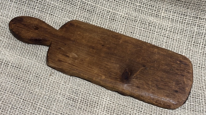 Early treen dough scraper. Nice patina, measures 10 1/4" x 4".