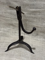 Wonderful 18th century iron candleholder. Adjustable, with cone socket and 2 leg ring base. Measures 30 1/4 inches tall, base 6 1/2" diameter.