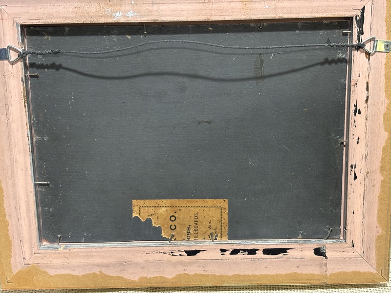 Wonderful early homestead painting. American, c.1900. Fantastic image, wonderful colors, great detail. Oil on board, with modern frame. Measures 14 1/2" x 11 3/8".